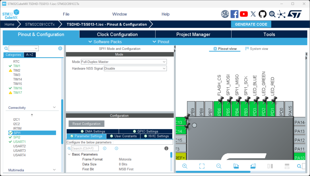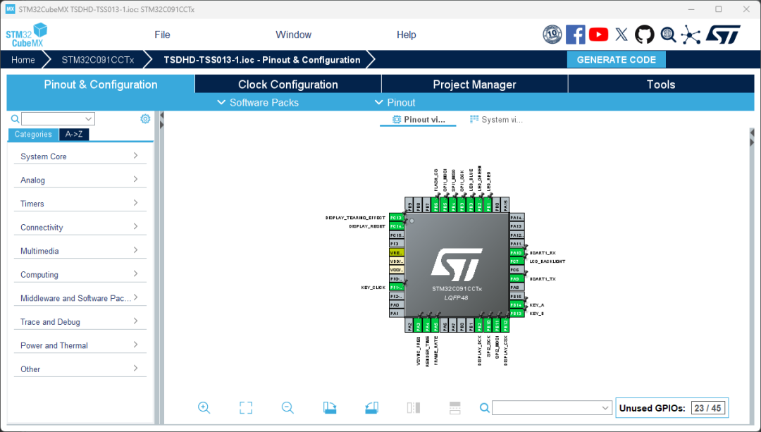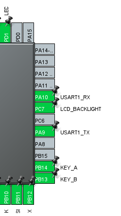 When open the official sample project file to check its peripherals. We can see that more than half of the pins are occupied by its built-in peripherals, essentially consuming all the resources of this LQFP48 MCU.