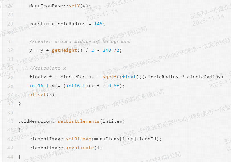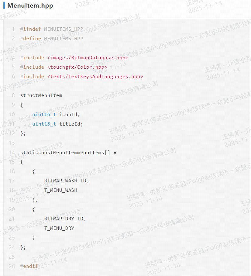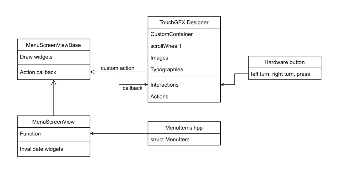 In TouchGFX Designer, we manually define the functions that run when each button is triggered. These functions are responsible for helping us scroll and rotate the menu