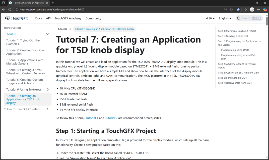 Meanwhile, an official development guide has been released on support.touchgfx.com to help us quickly get started with this non-touchscreen interaction mode of knob + single button.
