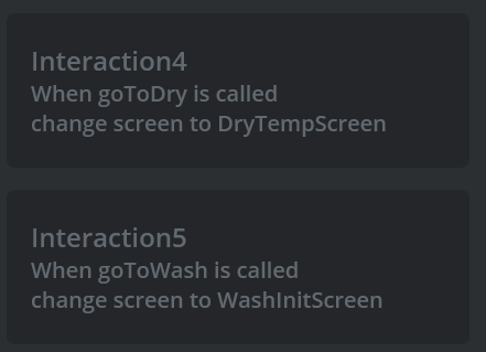 Reference link: https://support.touchgfx.com/docs/development/ui-development/touchgfx-engine-features/custom-triggers-and-actions#custom-actions In short, when you want an interaction to be triggered in code, you can try creating an action for it. An action can both be a trigger for an interaction and be triggered by an interaction.